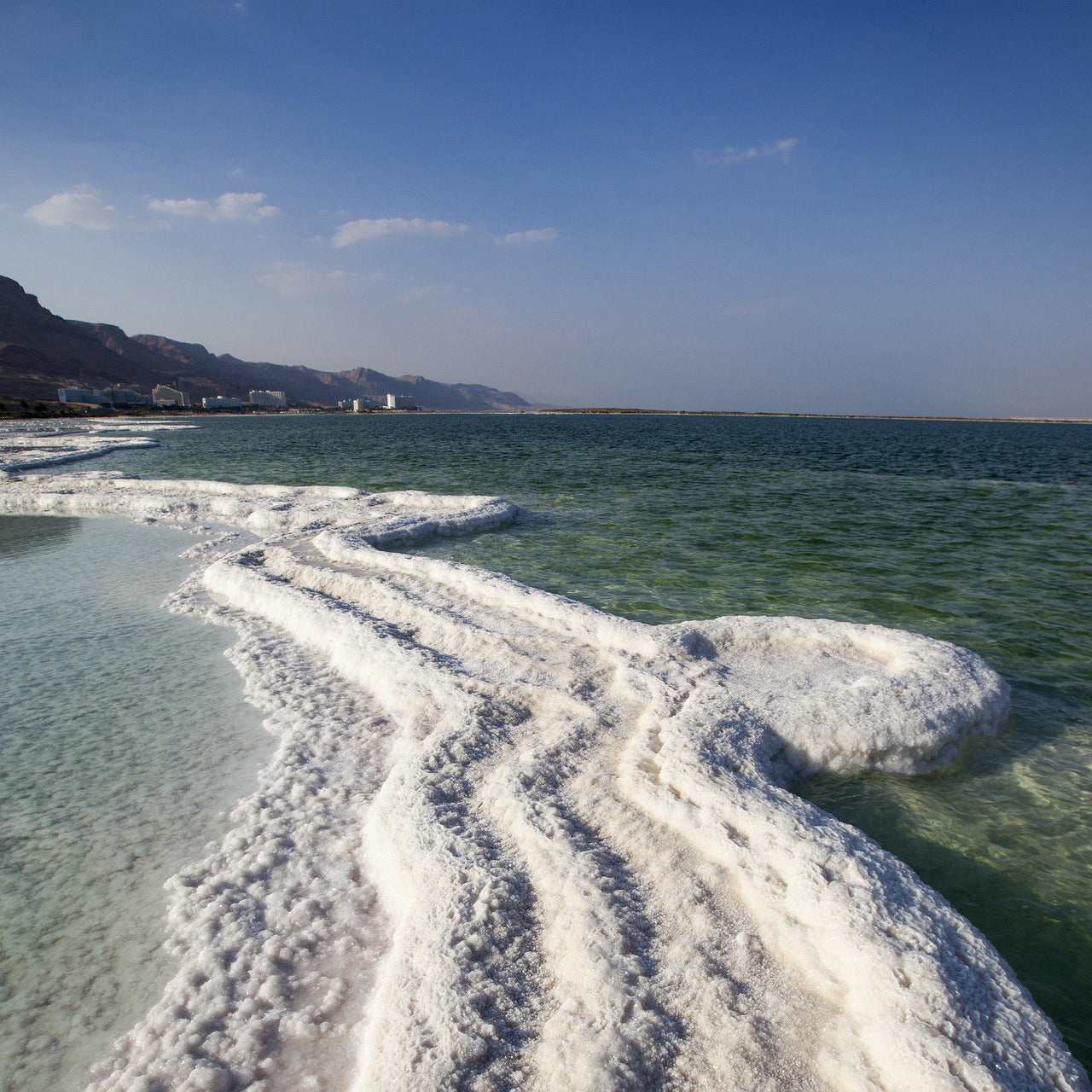 The Dead Sea sits at the lowest point on earth and is more concentrated in salt than any other sea in the world, making it deeply enriched with an array of rejuvenating minerals